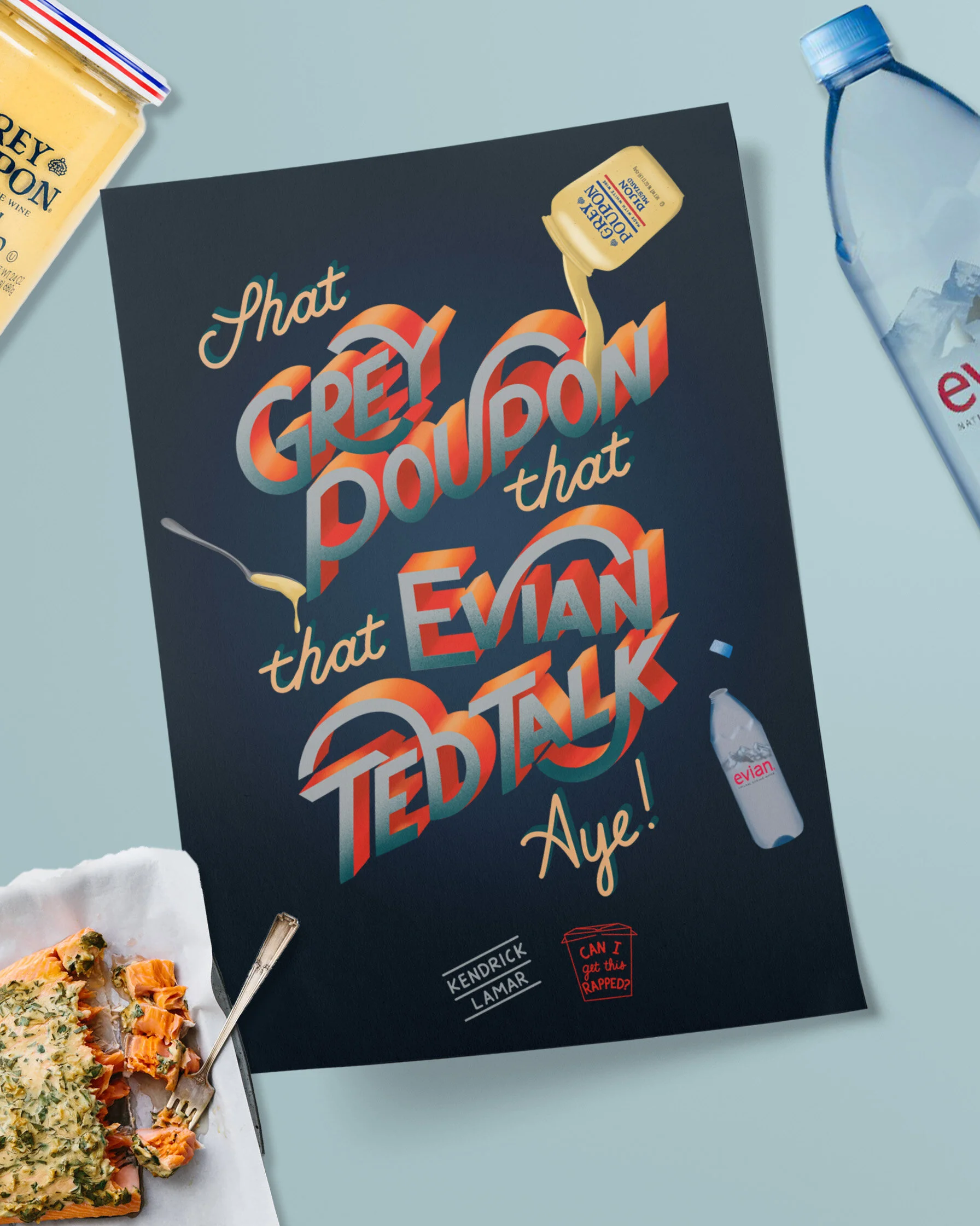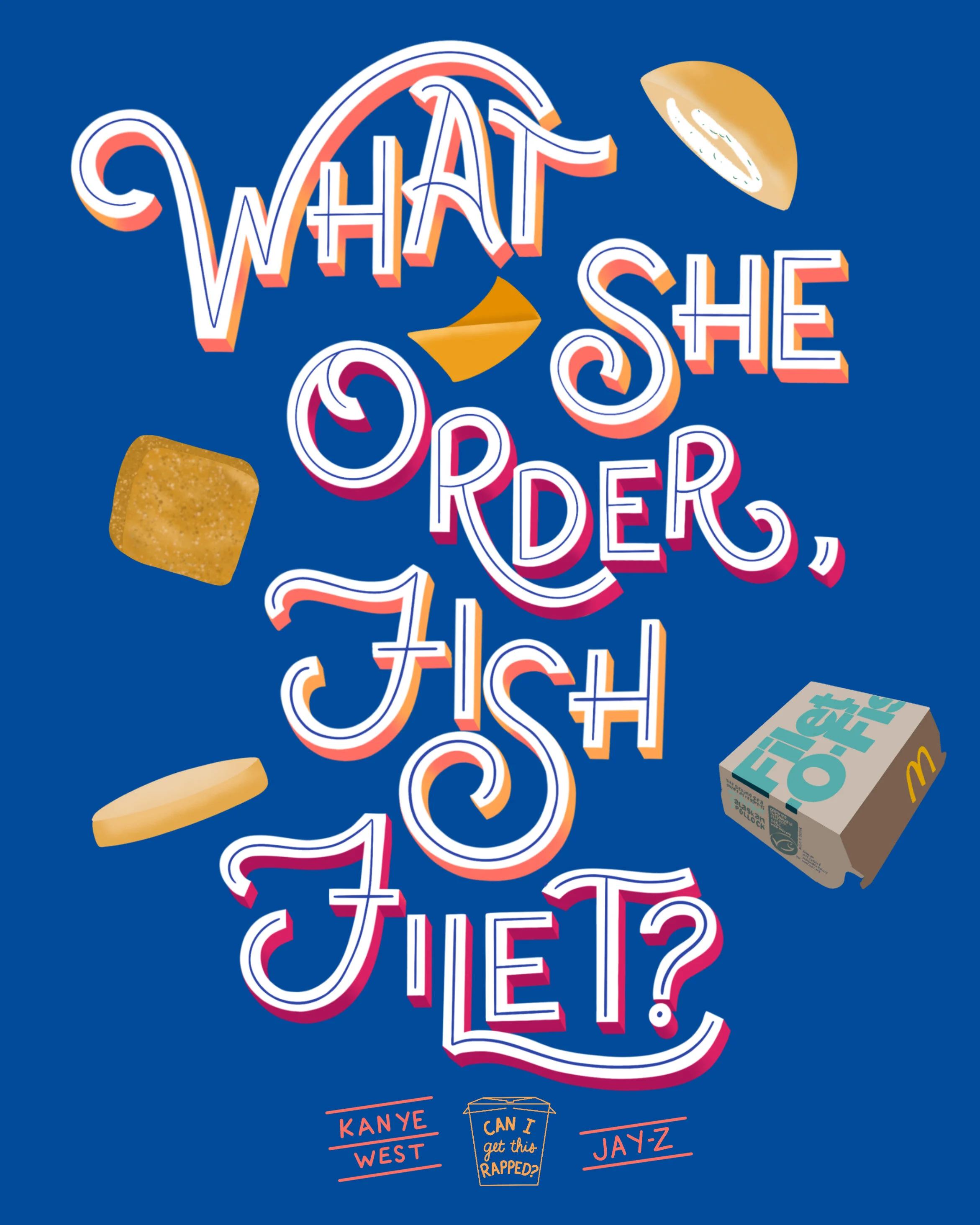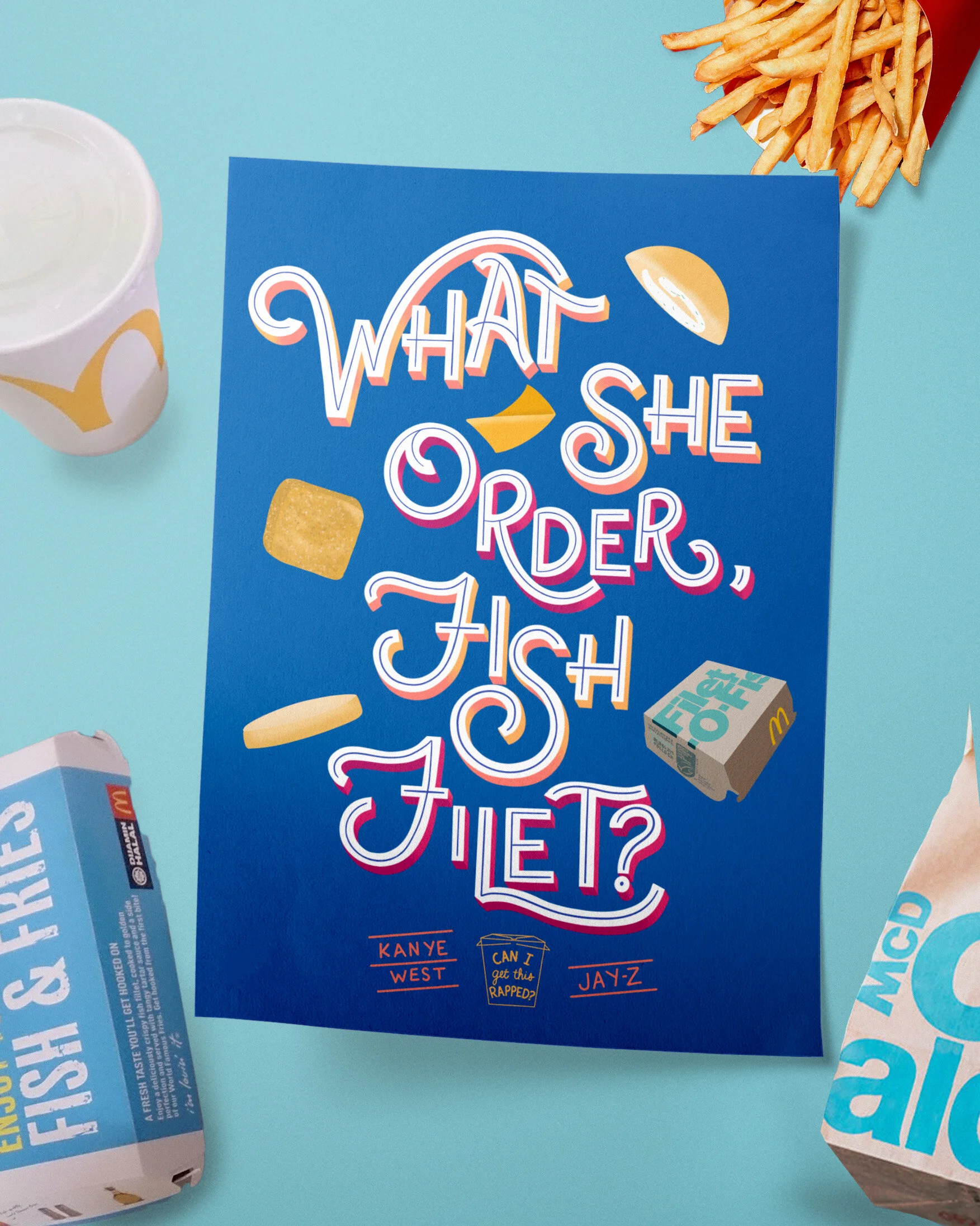 A side-project poster series of famous hand-lettered rap lyrics that mention food.
