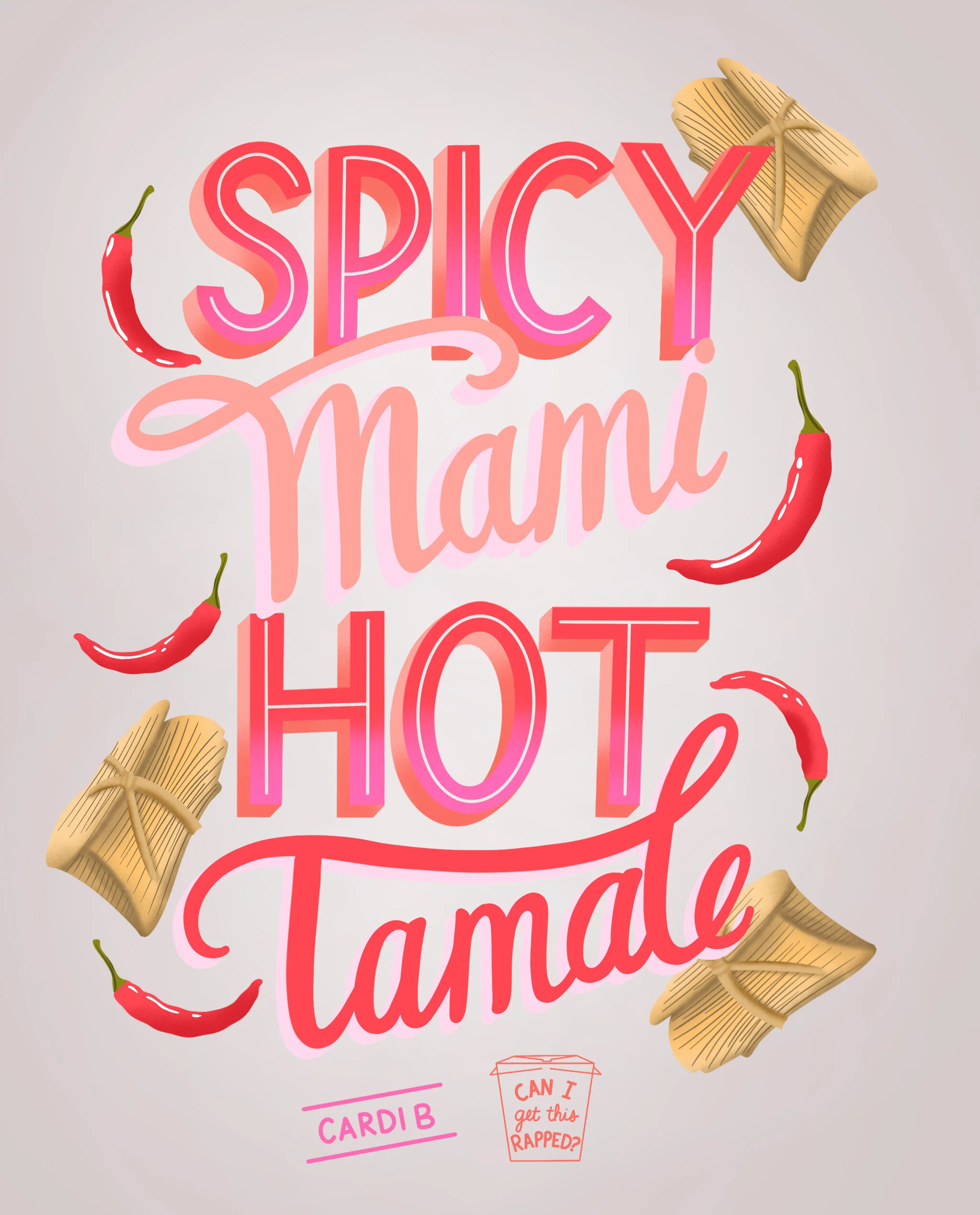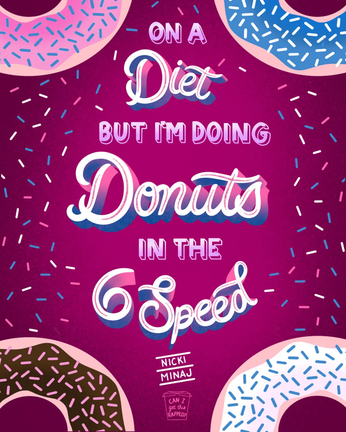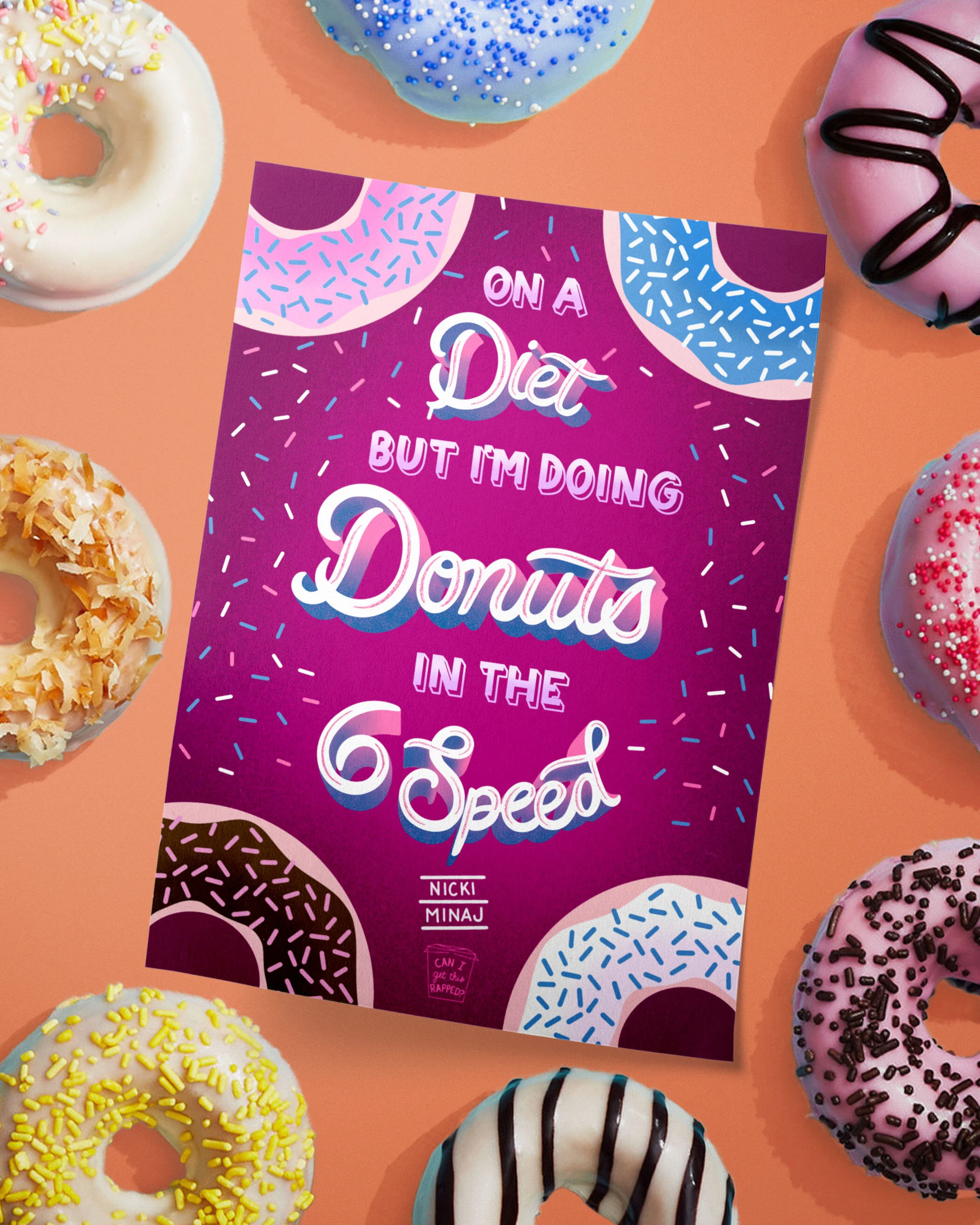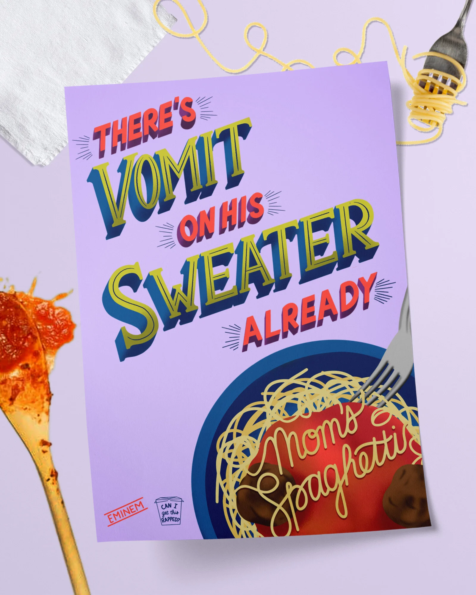 A side-project poster series of famous hand-lettered rap lyrics that mention food.